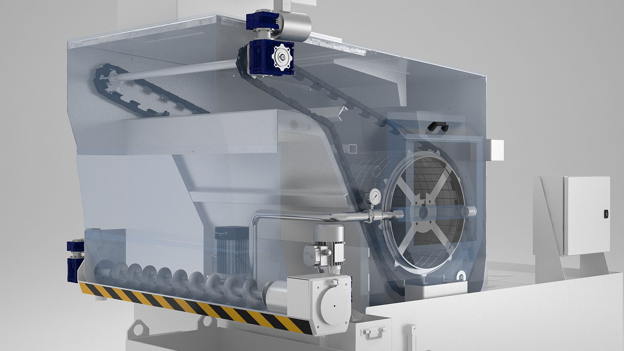 | Öntisztító dobszűrő, állandó szűrővel. |
