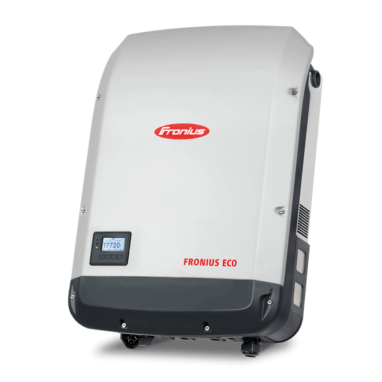 A 25,0 és 27,0 kW teljesítményosztályokban használható háromfázisú Fronius Eco-val optimálisan teljesülnek a nagy berendezések követelményei. A kis tömegnek és a SnapInverter szerelőrendszernek köszönhetően a transzformátor nélküli készülék egyszerű és gyors telepítést tesz lehetővé bel- és kültéren egyaránt. Az IP66 védettséggel új mércét állít fel az invertersorozat. Ezen kívül a minden pólusba beépített ágbiztosító tartóknak és az opcionálisan választható túlfeszültség védelemnek köszönhetően már nincs szükség gyűjtő dobozok használatára az ágakban.