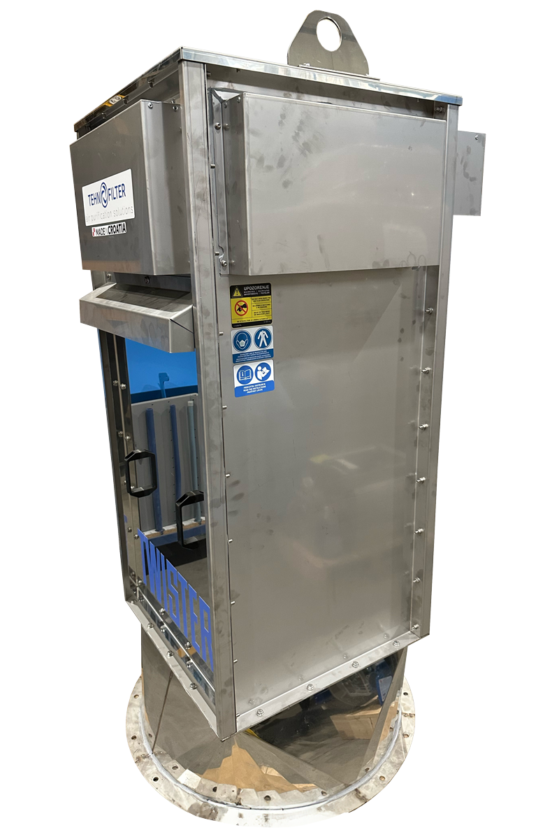 A Twister egy négyszögletes szűrőegység pneumatikusan töltött silók légtelenítésére. A rozsdamentes acél test függőlegesen elhelyezett szűrőpatronokat tartalmaz. Impulzussugár-tisztító rendszerrel van felszerelve. A Twistert úgy tervezték, hogy integrálódjon más rendszerekkel egy üzemi környezetben, hogy egyértelműen meghatározott alkalmazást kapjon.